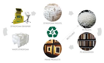 INTCO Recycling provides you total solution to EPS/Styrofoam recycling. GreenMax as the environmental protection machinery brand of INTCO Recycling, is specialized in waste plastic foam volume reduction by cold compacting or hot melting, which can help save transportation space and cost. INTCO Recycling also purchase back compacted or melted EPS blocks with good price, and then process them into PS pellets and produce environmental friendly PS construction molding and framing products, which is becoming popular among more customers.