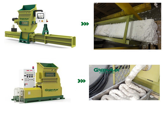 Regarding to EPS recycling machines, GREENMAX has specially designed APOLO series screw compactors and MARS series thermal densifiers. Due to the large volume of EPS fruit boxes, both of these two kinds of machines can smash and then compress or heat the EPS boxes into blocks or ingots, for the purpose of volume reduction and cost-effective transportation.