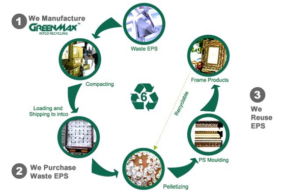 In order to respond to the policies, GREENMAX has always been dedicated to the recycling industry through EPS recycling, Styrofoam recycling, plastic recycling and PET bottle recycling. INTCO produced recycled plastic has been reused to make their frame products. From recycling waste to production has achieved a 100 percent recycling rate with zero pollution. So how does INTCO archive that? Here is the answer: