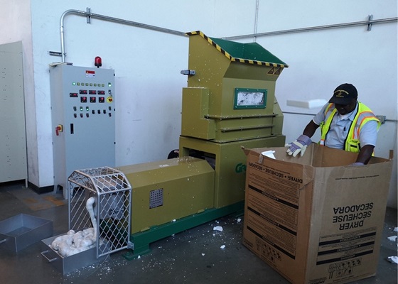 Now, more and more logistics companies are knowing Styrofoam is recyclable, and are seeking for ways to recycle their Styrofoam packaging waste. Some big American logistics companies, such as JB Hunt, have started using GREENMAX Styrofoam densifier to recycle their packaging waste.