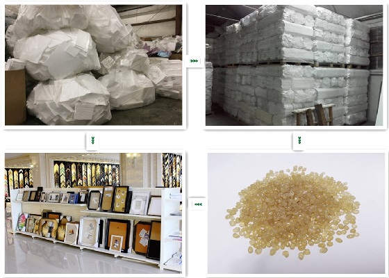 As a professional foam compactor manufacturer, GREENMAX was only a buyer of recycled foam scraps several years ago. We purchase foam blocks and lumps across the world and process them into PS pellets in our factories in China and Malaysia, and finally used in the production of picture frames, skirting lines and other decorative moldings.